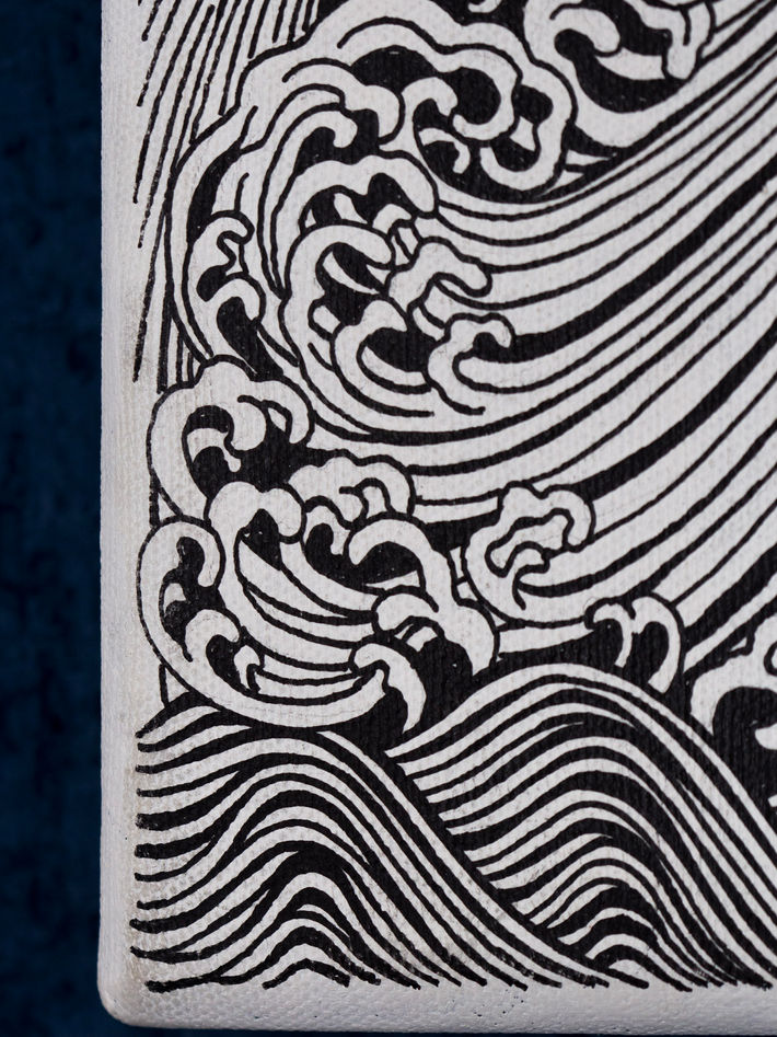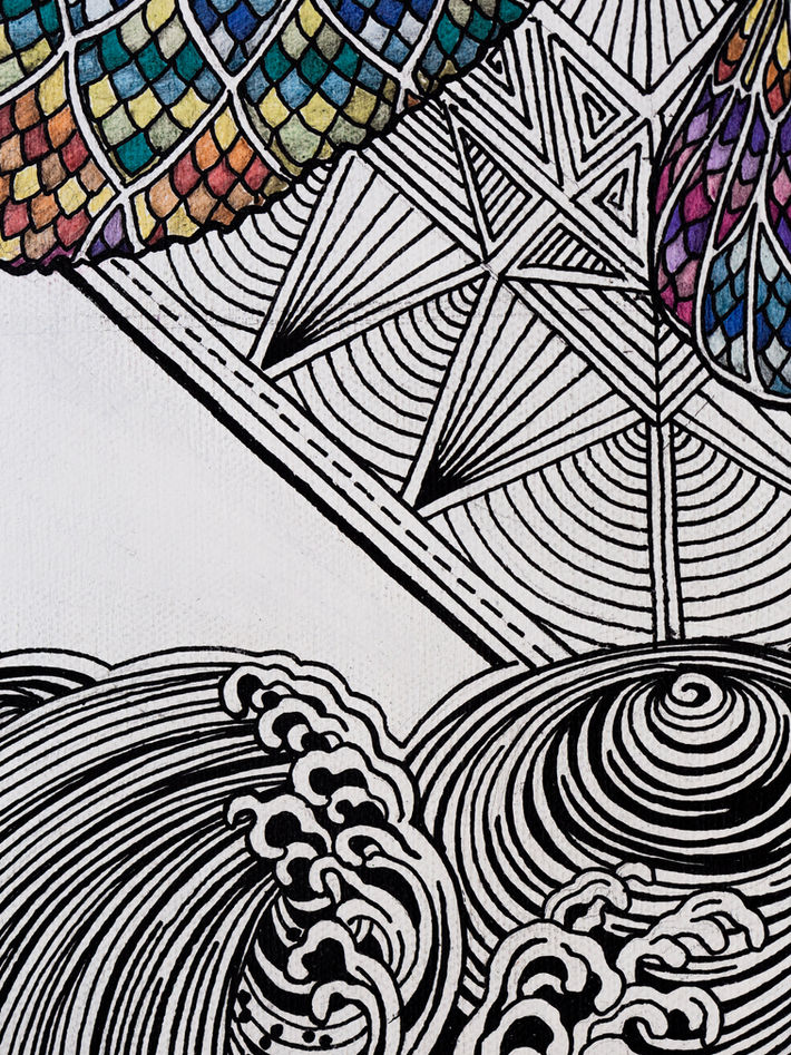 Tinta china y acrólico en pincel y estilógrafo sobre lienzo.